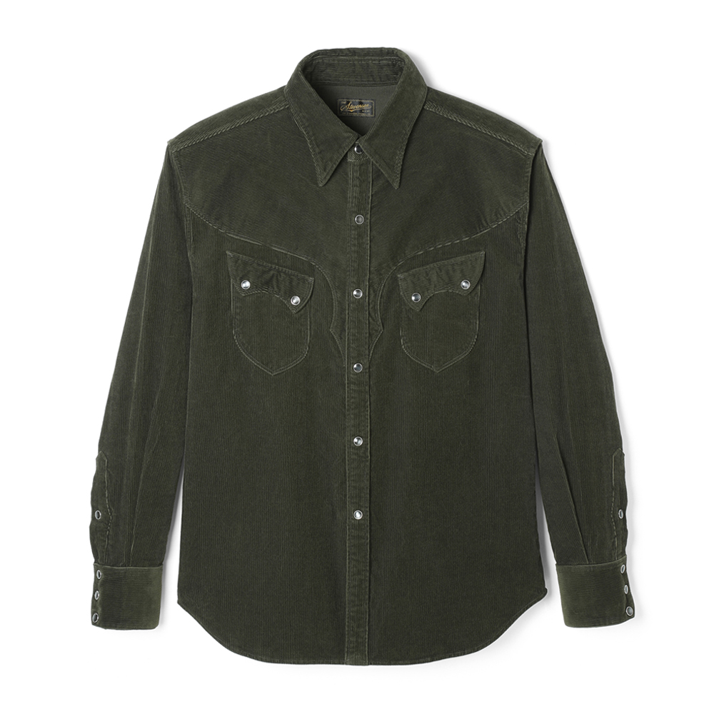 16ウェルの細畝のコーデュロイ生地は、落ち着いた光沢感と独特な肌触りが特徴の風合いの高い生地を採用しています。特徴的なデザインのウエスタンシャツとの相性も良く、クラシカルながら飽きの来ない表情を楽しめます。