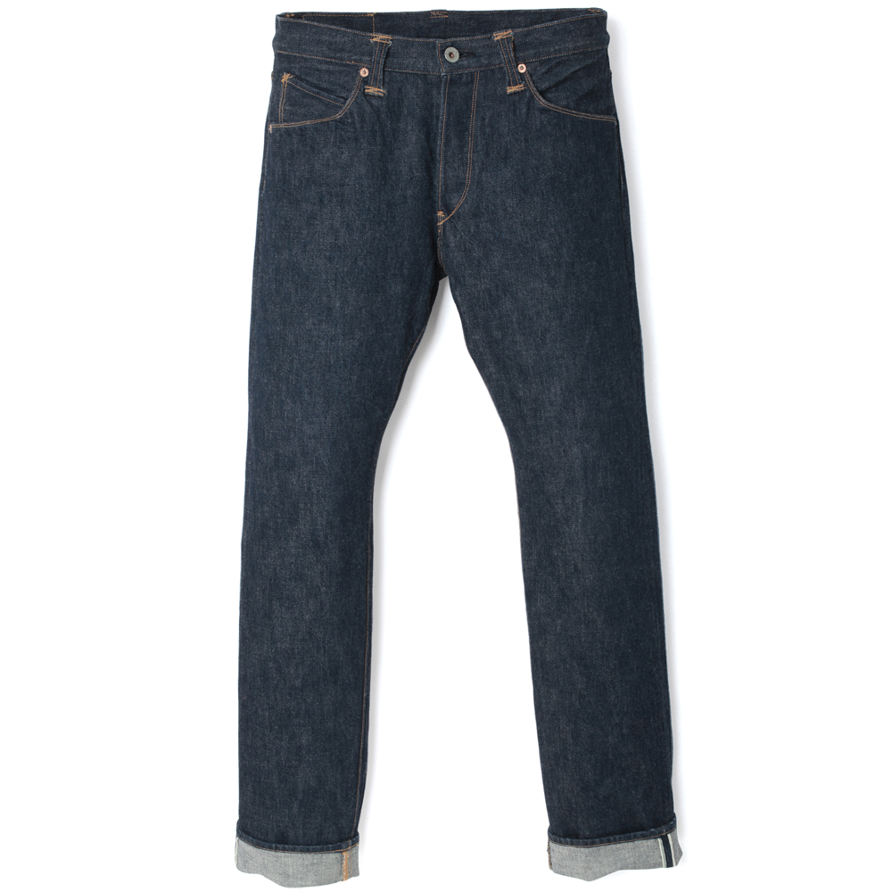 1960年代のジーンズをイメージした「ラホーヤ」。腰回り、ワタリがタイトでテーパードさせたタイトフィットなシルエットとなります。1920年代以前に見られる一本針の折伏せ縫いによる縫製でベルトループ、バックポケット、コインポケットをカーブさせた拘りの仕様となります。
