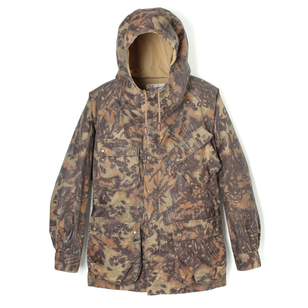 英国ヴィンテージのオイルドコットン製ライダースジャケットをベースにマウンテンパーカーのディテールをミックスさせたフーデットパーカーになります。表地は綿のオックス生地ですが、裏地には撥水性の高い「60/40クロス」を使用しているため水の浸入を防ぎます。